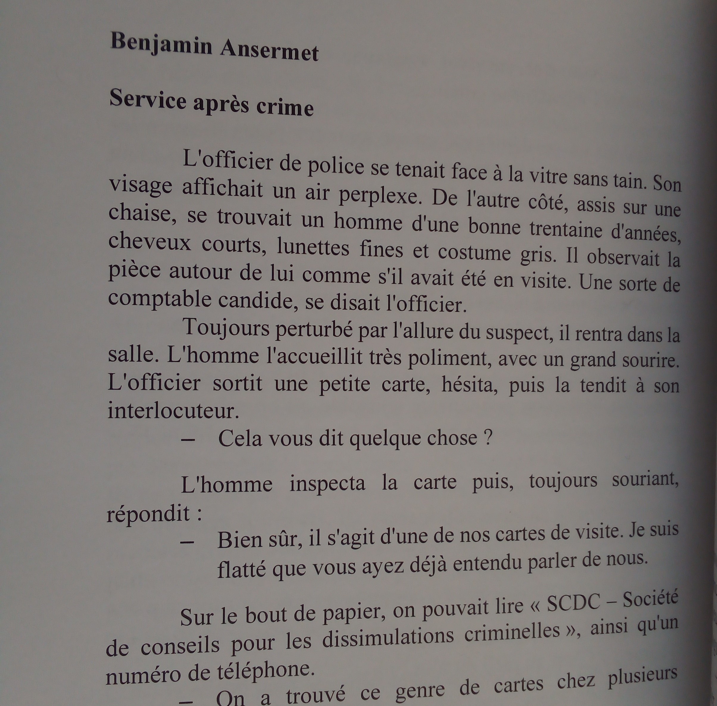 Vous y trouverez les textes et photographies des tableau des membres de l’association, ainsi que les gagnants du concours Nez-en-l’air de Villeneuve. 140 pages et une trentaines de noms, dont le mien, pour un petit texte humoristique sur une nouvelle société criminelle.